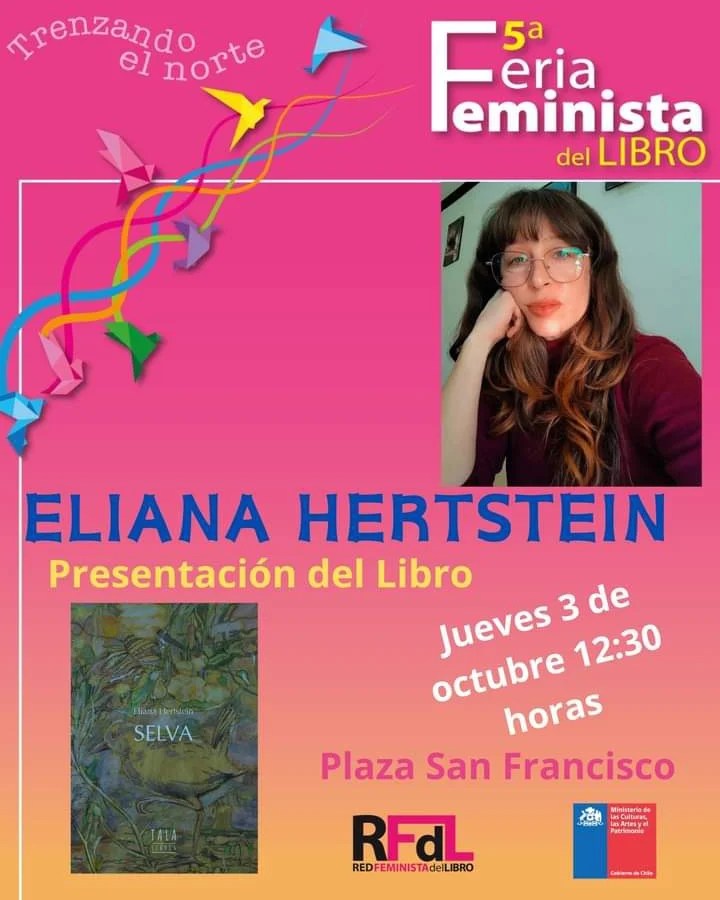 El periplo parte este día jueves 3 de octubre a las 10:00 horas en la Plaza San Francisco de La Serena con la exhibición hasta mañana viernes 4 antes de las 18:00 horas de parte de nuestro catálogo de libros junto a otras editoriales del país. En este contexto, la poeta Eliana Hertstein, hoy a las 12:30 horas, presentará su poemario “Selva”, con comentarios de la editora local Pía Ahumada Seura del taller editorial Me Pego un Tiro. A la vez, a las 17:00 horas, formará parte del conversatorio “Escribir y editar desde la geografía norte”, junto a Daniela Araya de Antofagasta y Paula Ceballos de Coquimbo, quienes reflexionarán sobre las implicancias de hacer libros desde regiones boreales del país.
